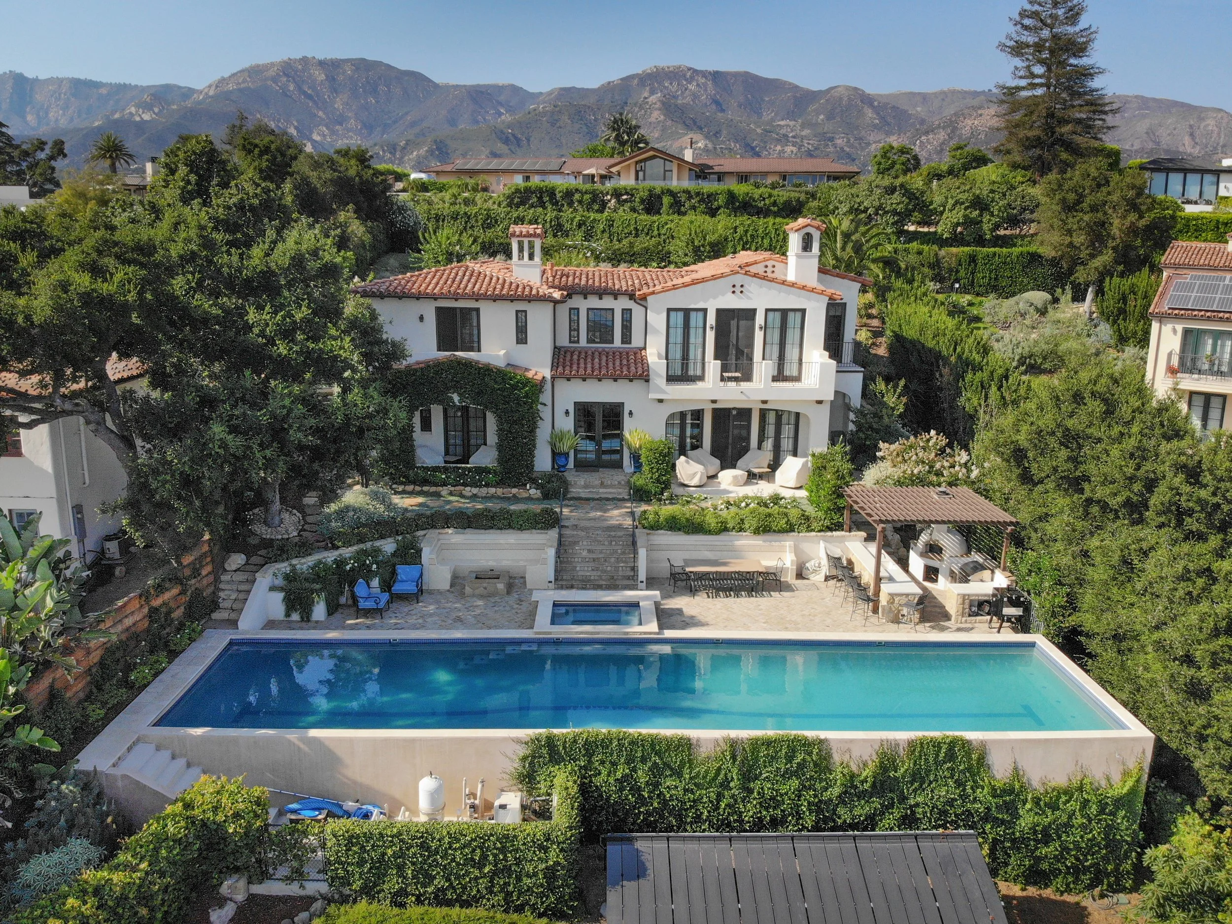 Nestled in the Santa Barbara hills, this breathtaking Spanish Revival home has the perfect view of Pier Santa Barbara and the Pacific.